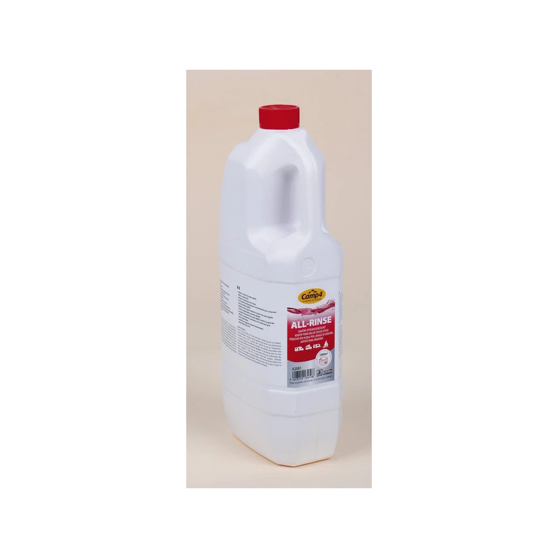 Additif de rinçage de la marque CAMP4, le produit All-Rinse est indispensable si vous disposer d’un réservoir d’eau intégrée à vos toilettes chimiques ou cassettes WC à bord du camping-car ou du fourgon aménagé.