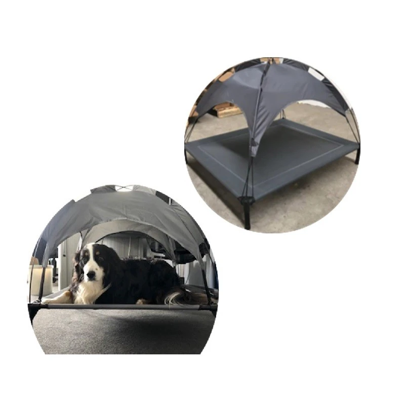 Lit de camp pliant pour chien CAMP4 avec ombrelle intégré pour protection du soleil idéal pour vos séjours en camping-car, fourgon aménagé ou camping.