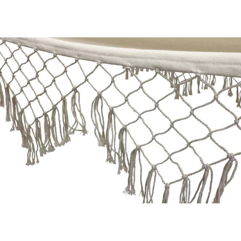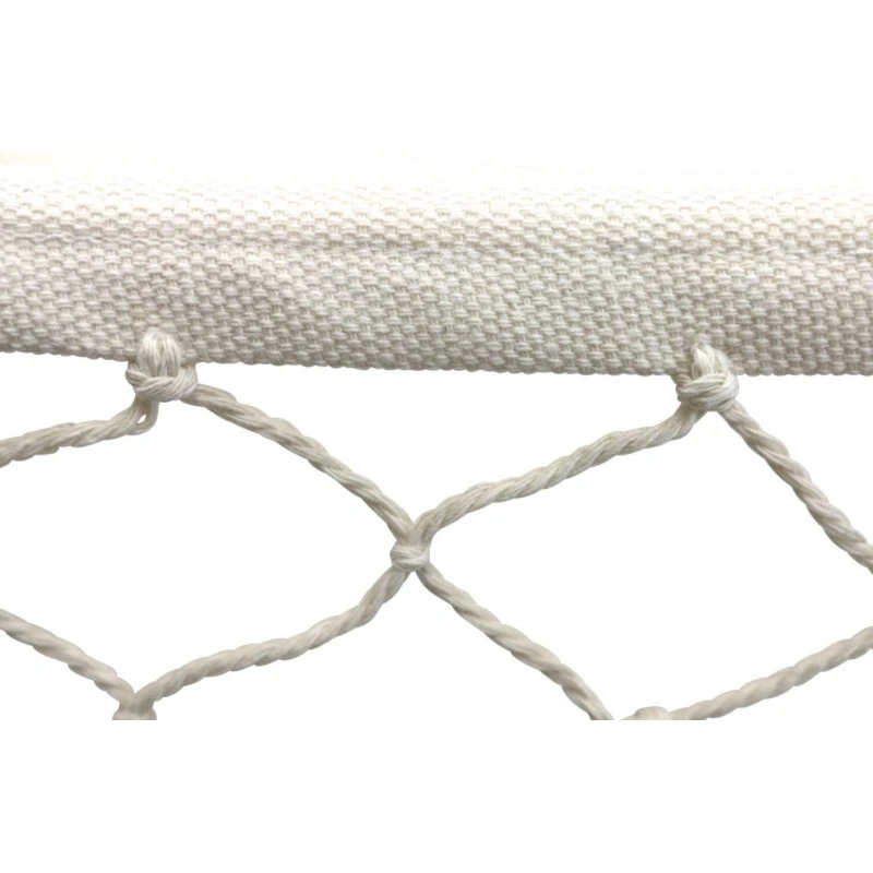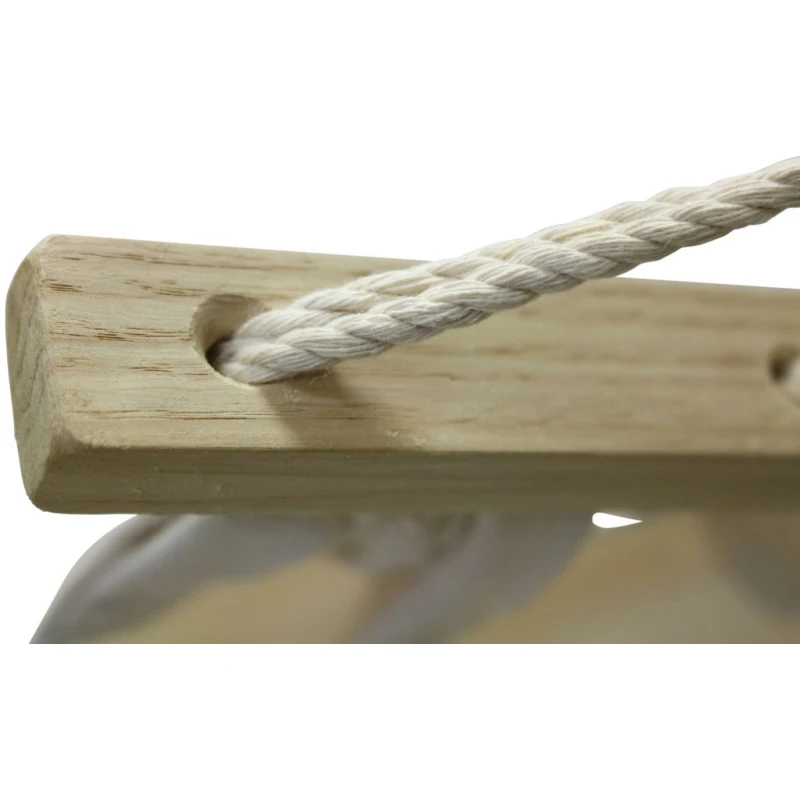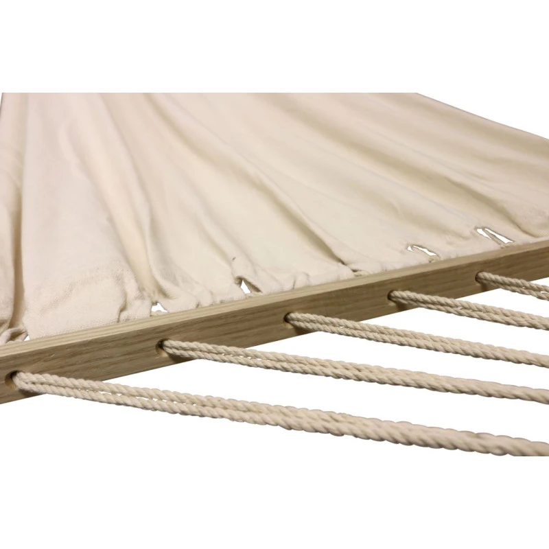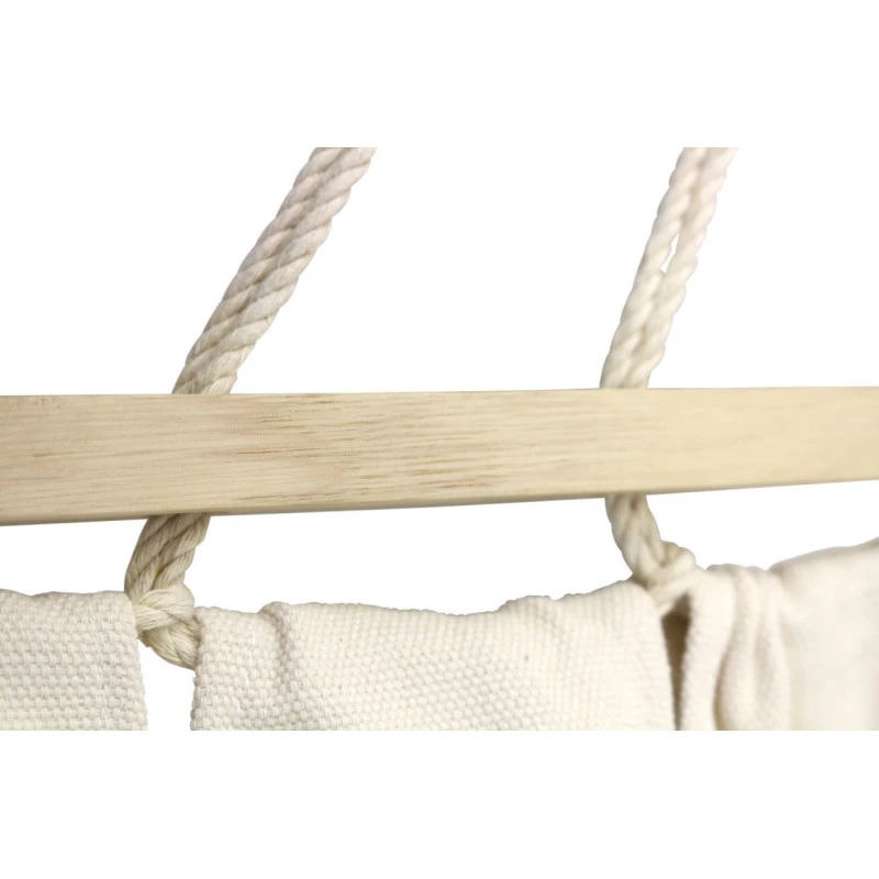 Hamac avec toile en coton blanc haute résistance par CAO OUTDOOR, très élégant avec ses écarteurs en bois pouvant accueillir 2 personnes avec sa charge maximale de 200 kg.