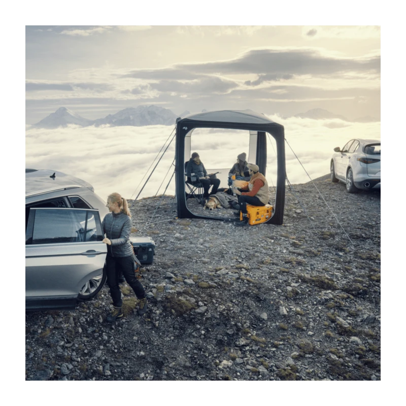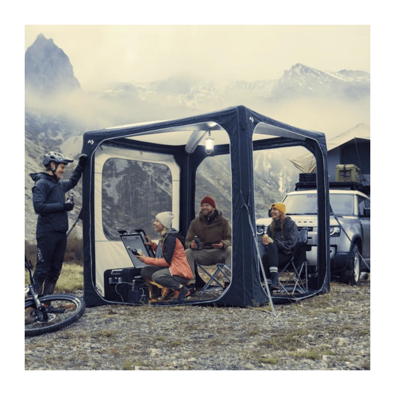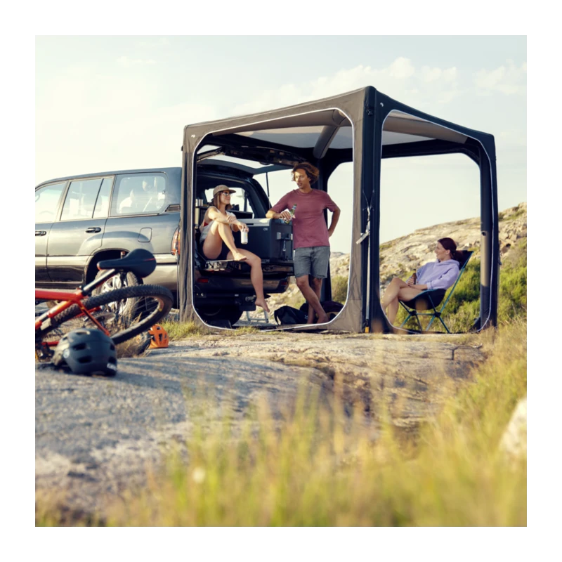 Abri multifonctions de la marque DOMETIC, le Hub est un espace unique doté d’armatures gonflables pouvant être indépendant ou raccordé à votre SUV ou fourgon aménagé.