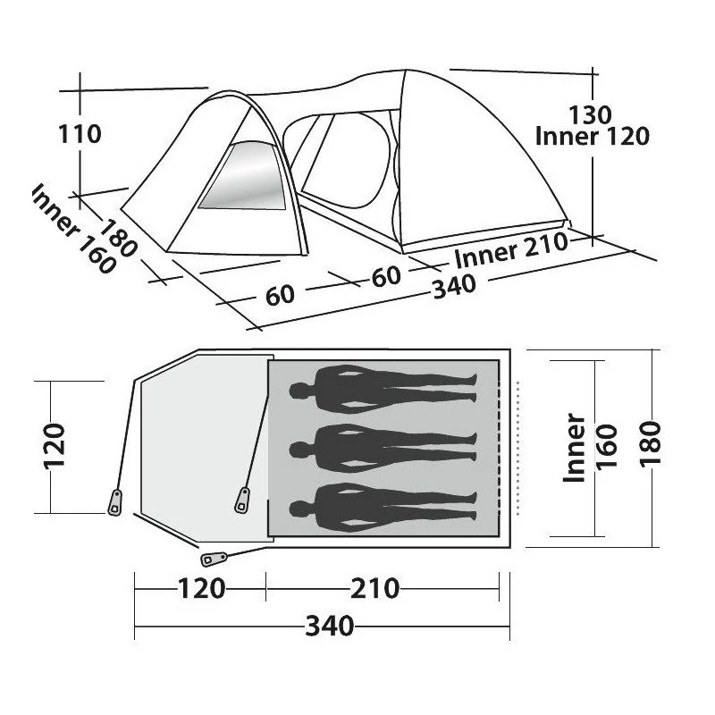 - Grande chambre : Avec une surface au sol de 210 x 160 cm, vous pouvez disposer à l’intérieur de la tente Blazar 300 un confortable et épais matelas gonflable.