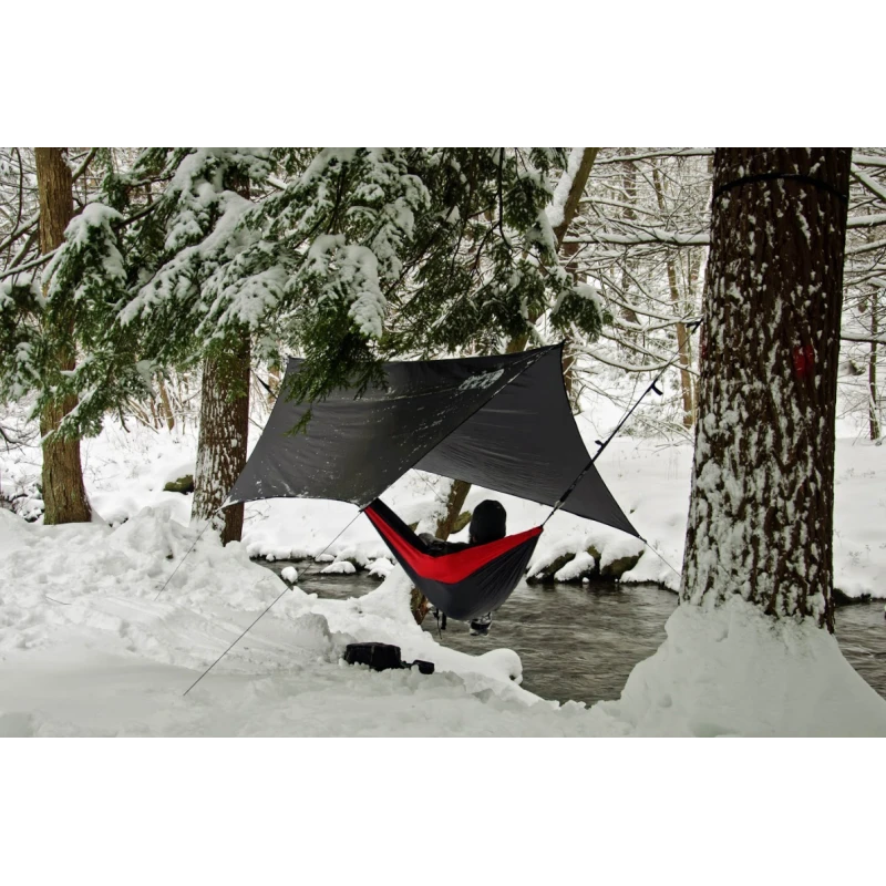 Cette toile en nylon et imprégné de silicone vous permettra de vous abriter en cas de fortes averses. Pratique si vous partez camper à la mi-saison, une fois accroché ce toit protégera votre campement, vos équipements ou encore votre lit de camp. Idéal pour le trekking en montagne, ce toit profilé est assez large pour accueillir toute votre tribu.