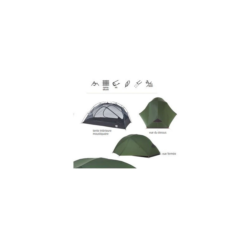 La tente dispose de deux entrĂ©es, d’une largeur de couchage confortable et d’une grande longueur pour y loger son matĂ©riel. La hauteur intĂ©rieure est un vrai plus pour se dĂ©tendre pleinement. FabriquĂ©e en polyester, la tente se monte avec une armature d’un seul tenant en alu, pratique lorsque l’on veut voyager simplement !
