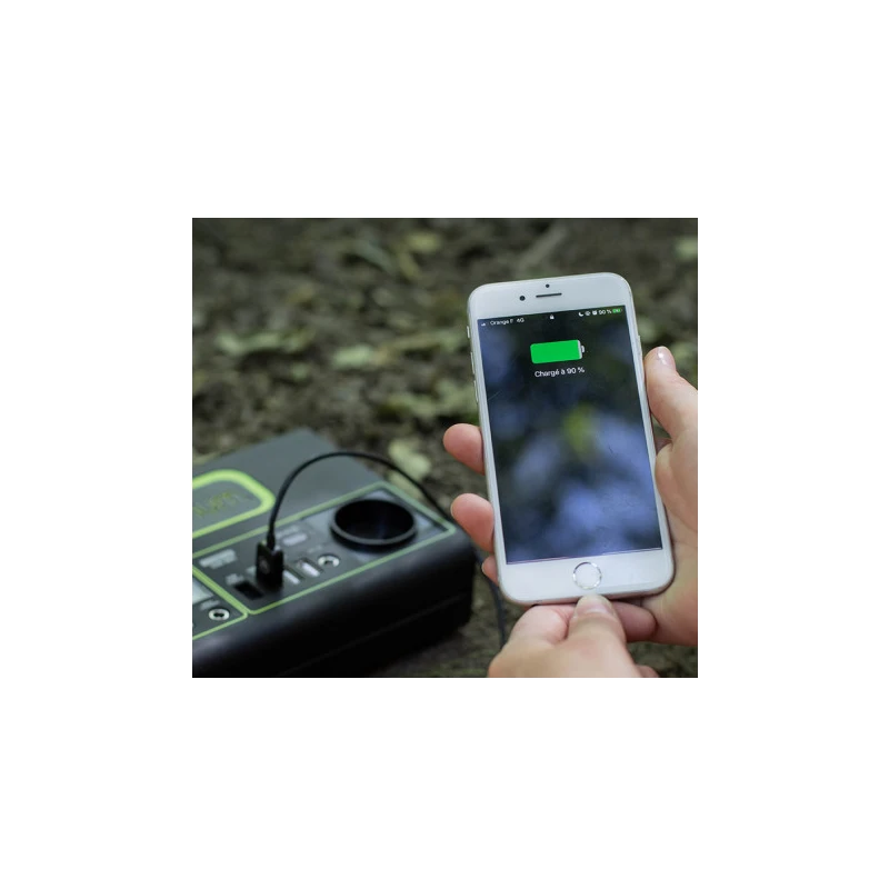 - Charge secteur 230 V, solaire ou par allume-cigare du véhicule
