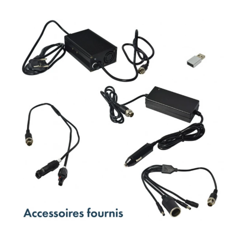 - Charge secteur 230 V ou solaire