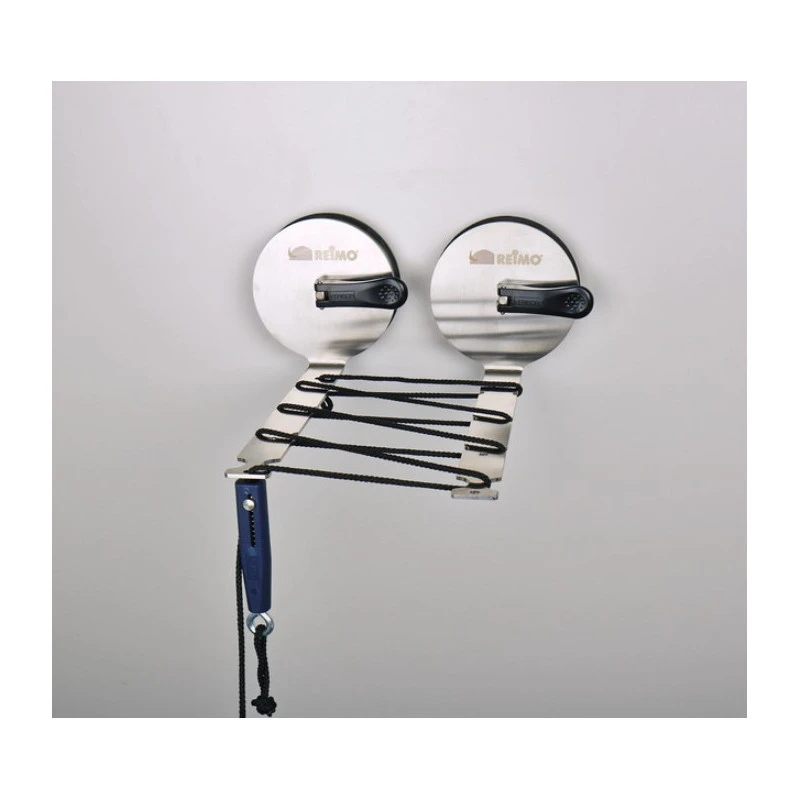 Etendoir, fil à linge avec deux ventouses à coller sur carrosserie de fourgon aménagé en camping-car, un équipement de qualité REIMO.