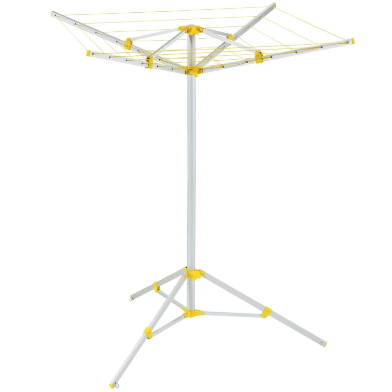 Cet étendoir avec une armature en aluminium supporte une charge de 25 kg pour pouvoir étendre le maximum de vêtements. Tout l’étendoir à linge se replie rapidement et efficacement pour ne tenir que dans un petit sac de transport, très facile à loger dans votre soute ou un placard. Cet accessoire de camping vous deviendra vite indispensable pour vos départs en vacances en camping-car ou caravane.